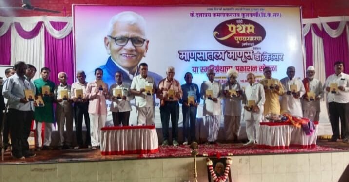 कळंब येथील शुभमंगल कार्यालयात दिनांक ४ ऑक्टोबर रोजी आयोजित केलेल्या ‘माणसातला माणूस डी.के. सर स्मृती ग्रंथाच्या’ (कै. दत्तात्रय कमलाकर कुलकर्णी) प्रथम पुण्यस्मरण प्रकाशन समारंभाच्या अध्यक्षस्थानावरून बोलत होते.