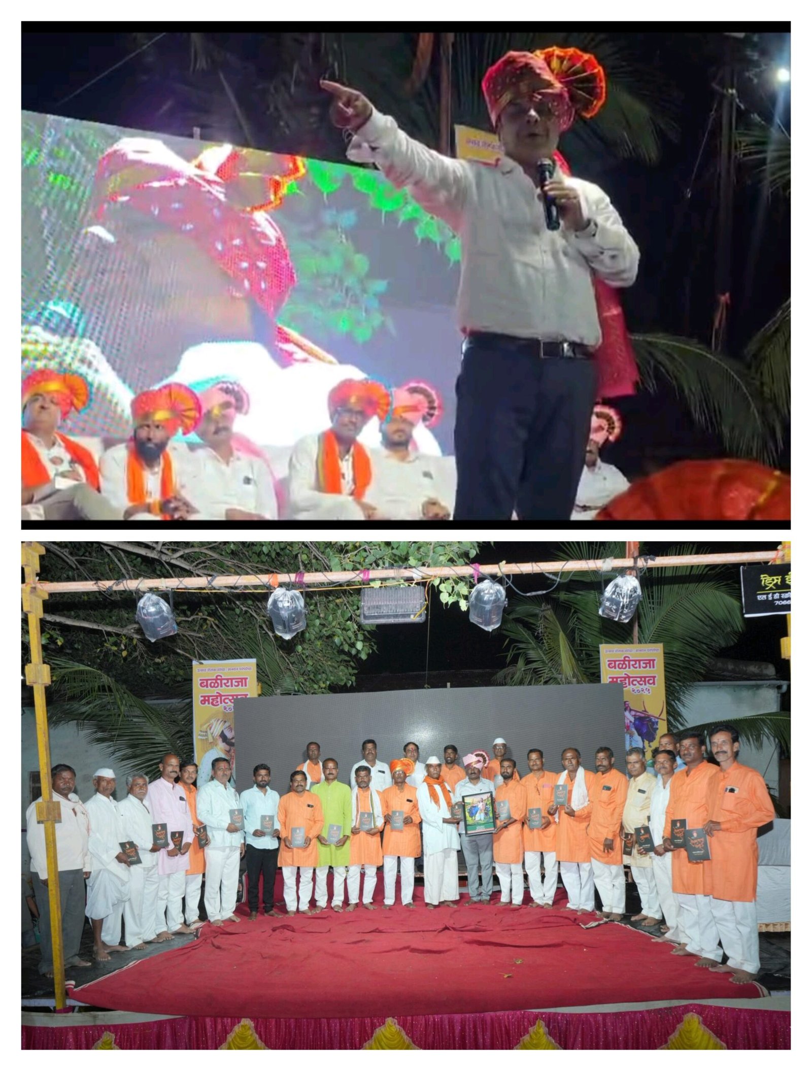 यश मेडिकल फाउंडेशनचे संचालक डॉ. संदीप यांनी बोलताना “ईडा पीडा टळू दे, बळीचं राज्य येऊ दे” अशी गर्जना केली. देशातील पहिली कर्जमाफी तुकाराम महाराजांनी शेतकऱ्यांना दिली, म्हणून त्यांच्या ‘गाथे’चे पूजन व्हायला हवे. बळीराजाचे राज्य भारताबाहेर अफगाणिस्तान आणि श्रीलंकेपर्यंत पसरले होते. याचे सुंदर वर्णन महात्मा जोतीराव फुले यांनी त्यांच्या पुस्तकात केले आहे. एवढ्या मोठ्या बळीराजाला एका विशिष्ट समाजाने पाताळात घालण्याचे ‘पाप’ केले आणि आपल्याला कर्मकांडात जखडून ठेवले आहे. तुकाराम महाराजांनी पाहिले, वाचले आणि लिहिले, म्हणूनच त्यांना गाथेसह बुडवले गेले. एवढे असूनही आपण आजही राक्षस, दैत्य, दानव यांना वाईट समजतो. पण त्यांनी समाजाचे रक्षण करण्याचे काम केले आहे, याची आपणास माहिती नाही. छत्रपती शिवाजी महाराज, शाहू, फुले, आंबेडकर यांनी शेतकऱ्यांच्या अन्यायाविरोधात आवाज उठवला आणि लढा दिला. तेच काम आता मनोज जरांगे पाटील करत असल्याचेही त्यांनी सांगितले.