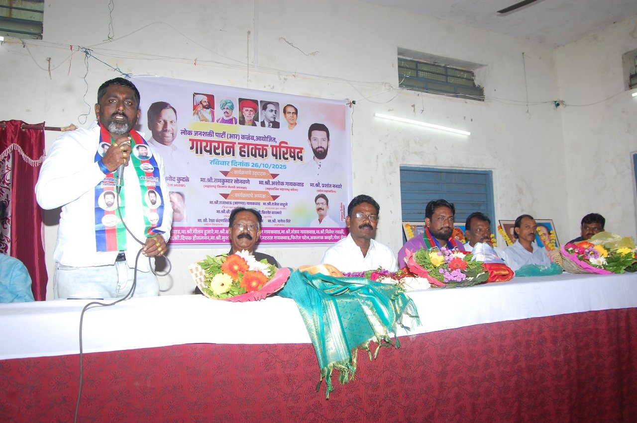 गायरान हक्क परिषदेचे आयोजन पार्टीचे जिल्हाध्यक्ष राजाभाऊ गायकवाड यांच्या नेतृत्वाखाली करण्यात आले होते. या वेळी कार्यक्रमाच्या सुरुवातीस महामानवांच्या प्रतिमेचे पूजन करून अभिवादन करण्यात आले.कार्यक्रमाचे प्रास्ताविक माजी नगरसेवक सुनील बन्सी गायकवाड यांनी केले. या परिषद कार्यक्रमाच्या अध्यक्षस्थानी राजेश वाहुळे हे होते. तर प्रमुख पाहुणे म्हणून लोक जनशक्ती पार्टीचे महासचिव प्रा.अशोक गायकवाड हे होते.